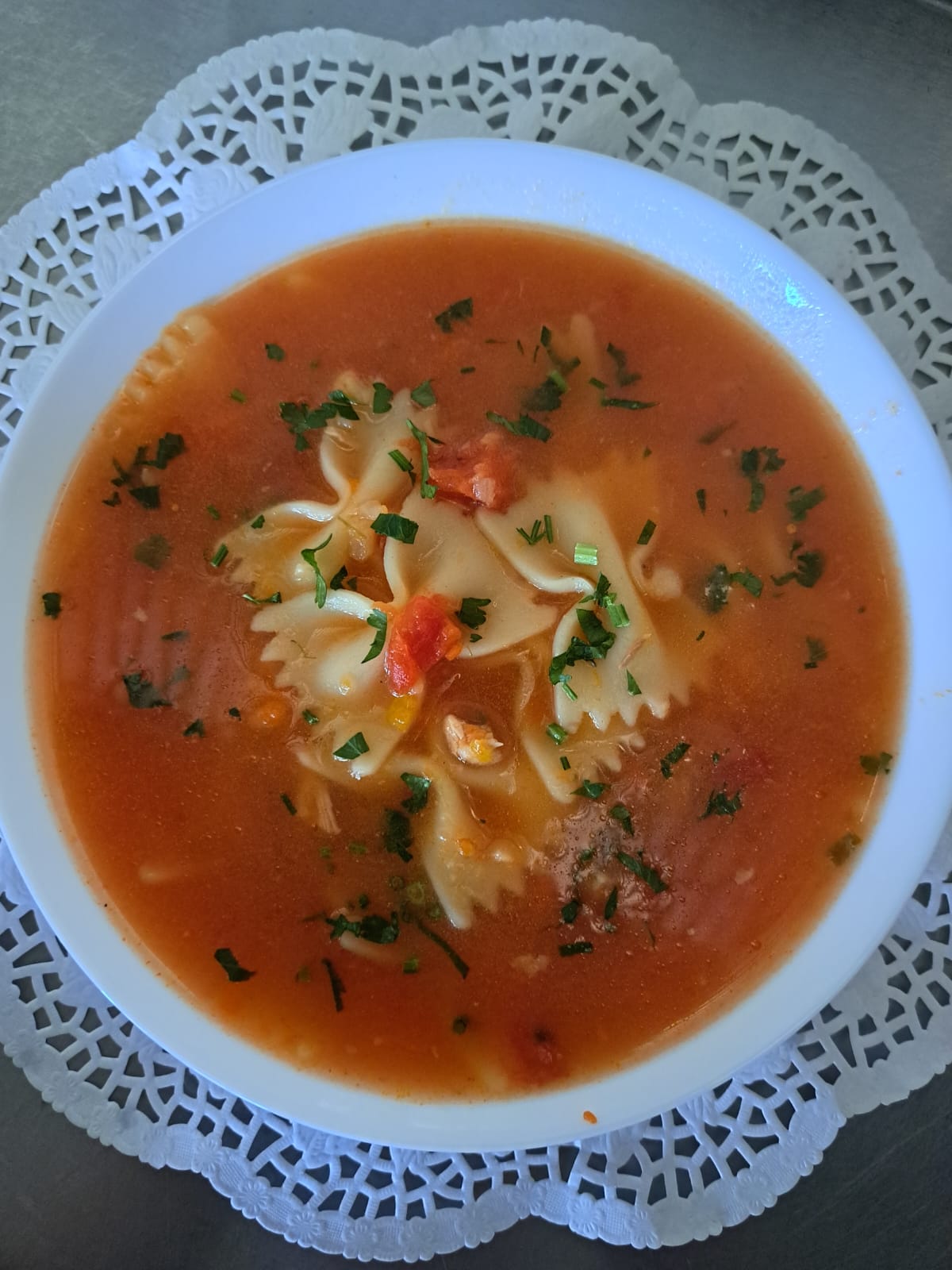 OBIAD | SPAGHETI Z MAKARONEM KOKARDKI (łopatka, makaron, koncentrat pomidorowy, olej rzepakowy, czosnek marchew, pietruszka, seler, por, cebula, , bazylia, zioła prowansalskie, majeranek, oregano, pieprz, sól) (100G), KOMPOT Z SUSZONYCH OWOCÓW (mieszanka kompotowa, morela suszona, śliwka suszona, żurawina, rodzynki )(150ml), MILERMIŚ JAGODOWY (150ML) - WYRÓB WŁASNY |